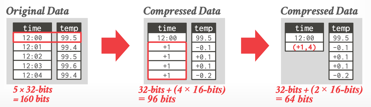 - DBMS 可以结合多种方式一起使用,来获取更好的压缩效果。