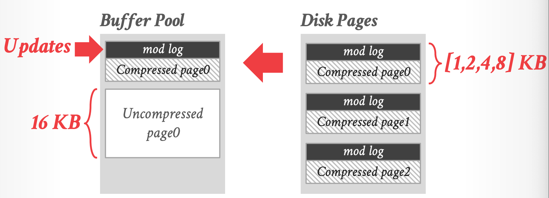 - compressed page 的大小是固定的几个尺寸,不够会padding