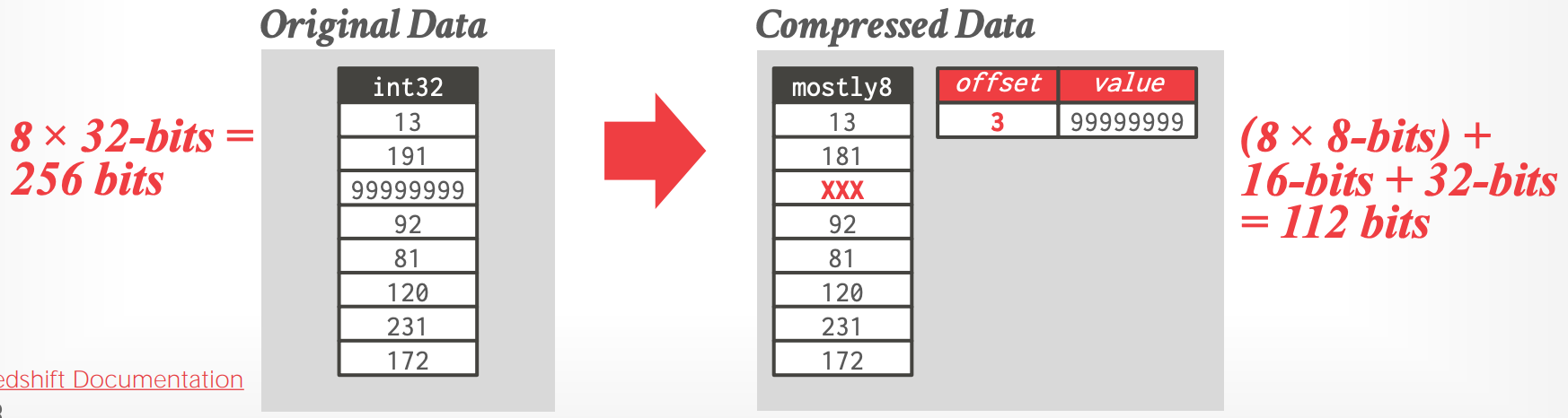 - [Redshift Documentation](https://docs.aws.amazon.com/redshift/latest/dg/c_MostlyN_encoding.html)