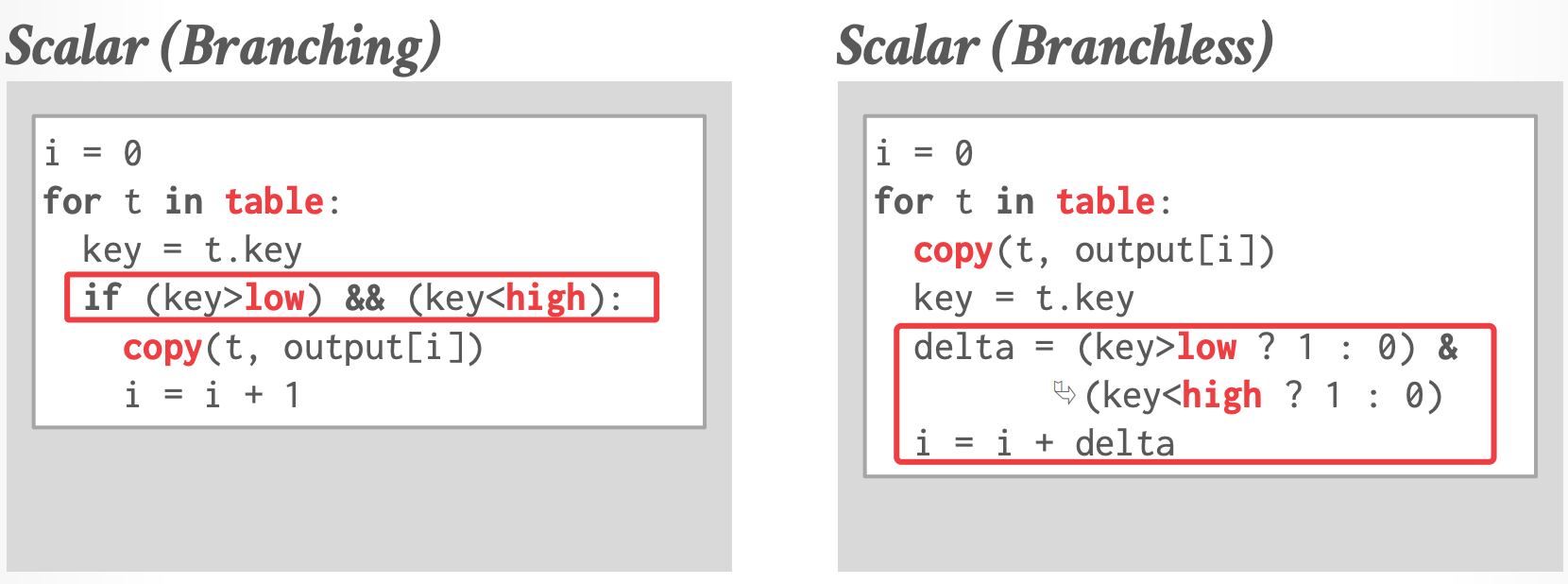 - DBMS中执行最多的分支代码是顺序扫描期间的 **filter** 操作