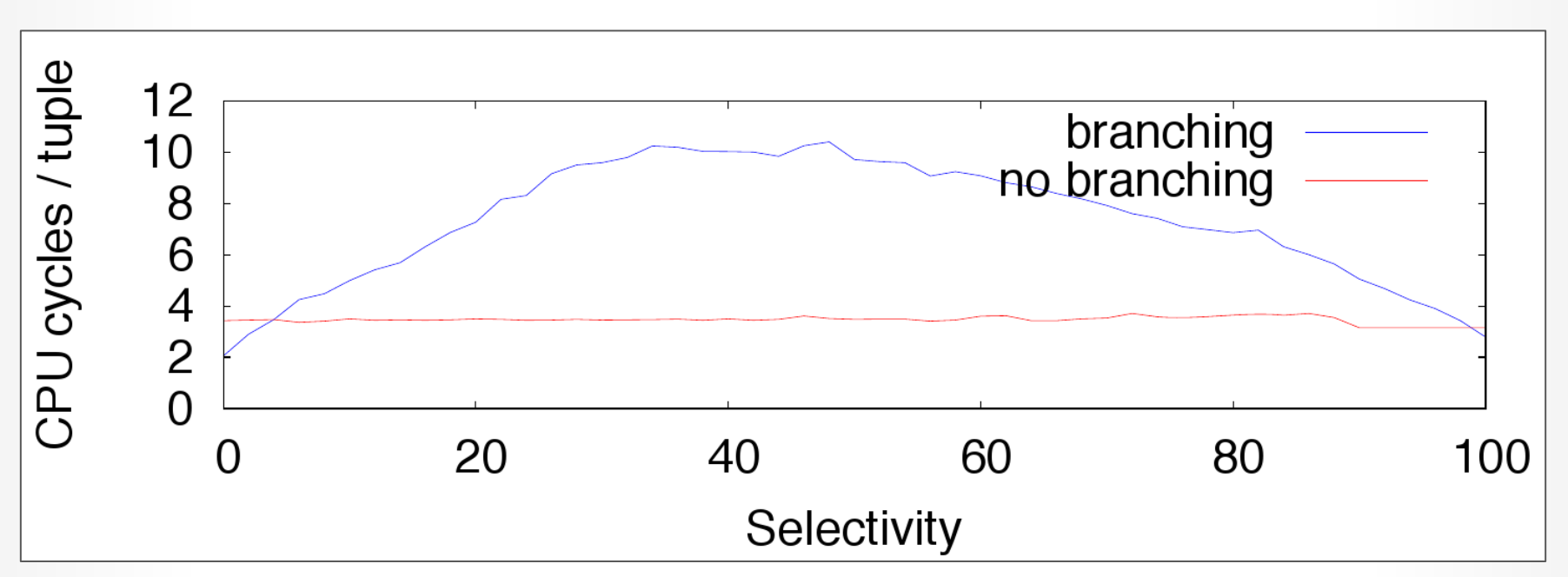- Selectivity 对分支预测的影响: