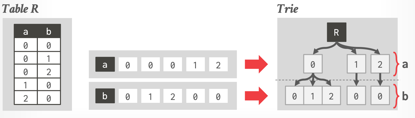 - trie 的每一个 level 代表了 join keys 中的一个 attriubte