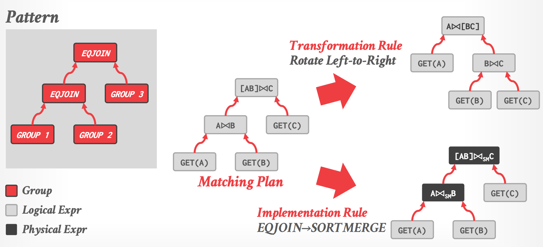 - **Pattern**:定义了可以应用这条规则的 logical expression 的结构